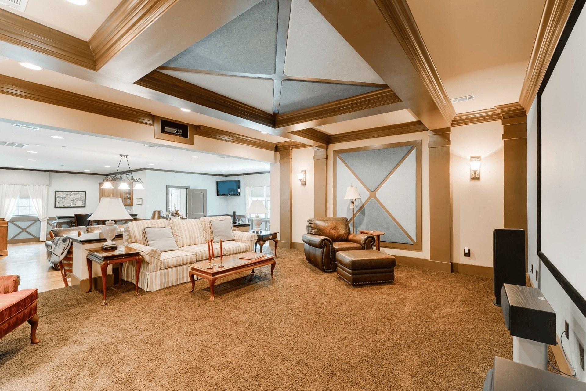 - Upstairs bonus room with a media area, kitchenette, and bar space