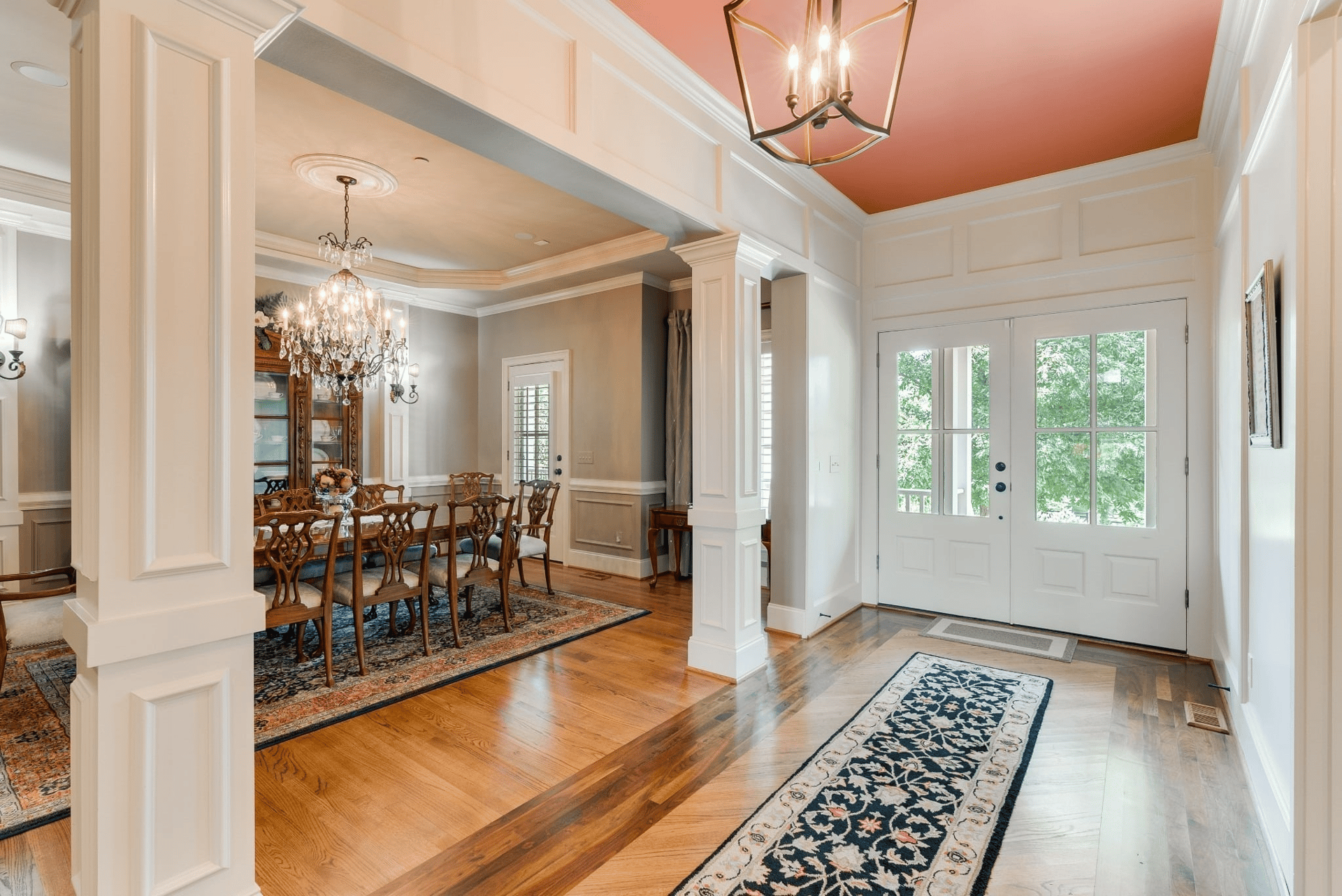 Right when you step inside the front door, you will be greeted by a wide hallway with a home office on your left and the formal dining room on your right. The home office provides plenty of space to get work done and meet with clients. There is a set of French doors that allow for privacy from the rest of the home to allow you to stay focused.