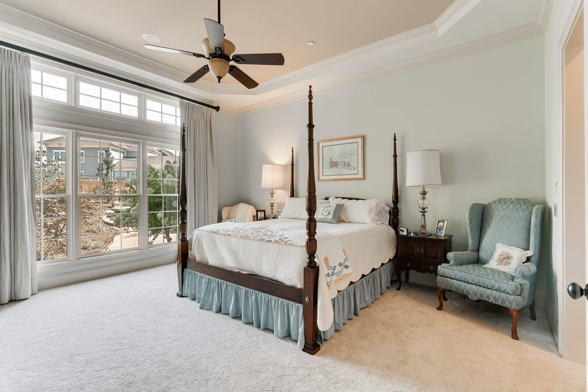 The formal dining room has direct access to the outdoor porch and plenty of space for a large table, perfect for large gatherings, a china cabinet, and any other furniture and decor that you desire to put in your dining room. There is also direct access to the kitchen through a butler’s pantry, making moving dishes from the kitchen to the table as easy as possible.